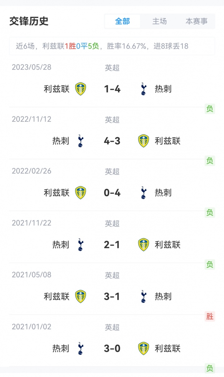利兹联2胜2平2负积8分,排行英超第12;热刺3胜2平1负积11分,排行英超第5。