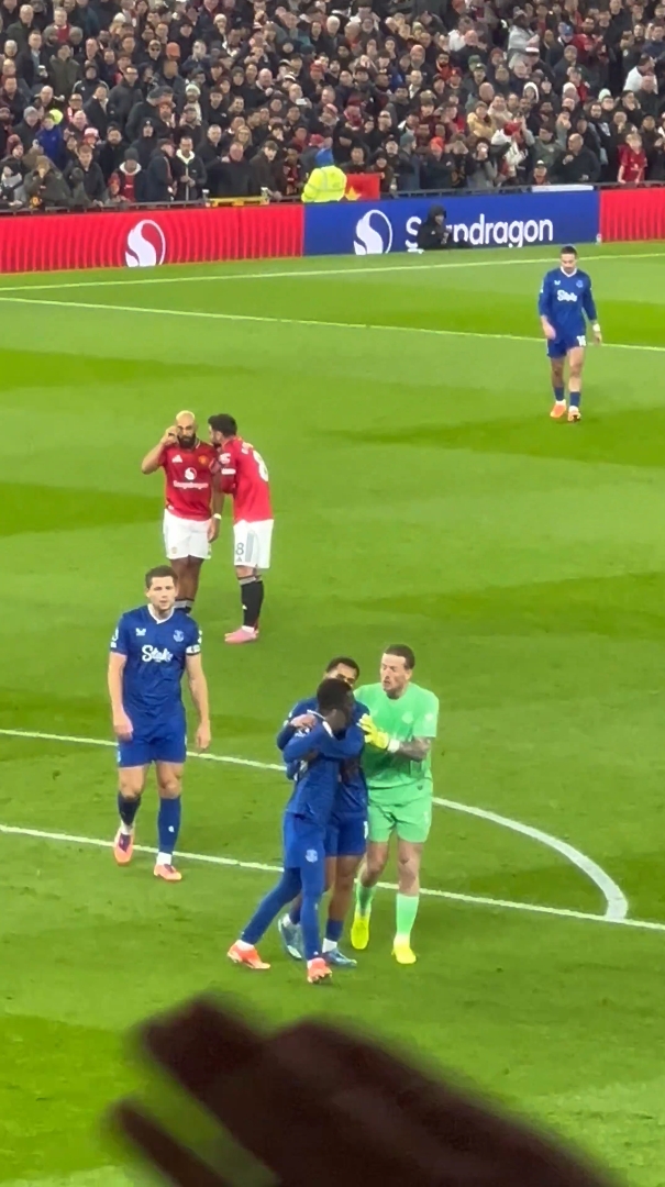 盖耶染红后情谊沸腾喋喋束缚,皮克福德和恩迪亚耶抱住安抚,盖耶仍在挥拳似乎要打东谈主。