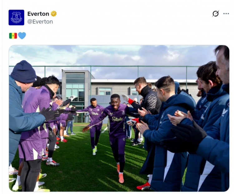 埃弗顿官方社媒晒出欢迎盖耶、恩迪亚耶非洲杯夺冠归来的照片,对队内的塞内加尔队员表达支持。