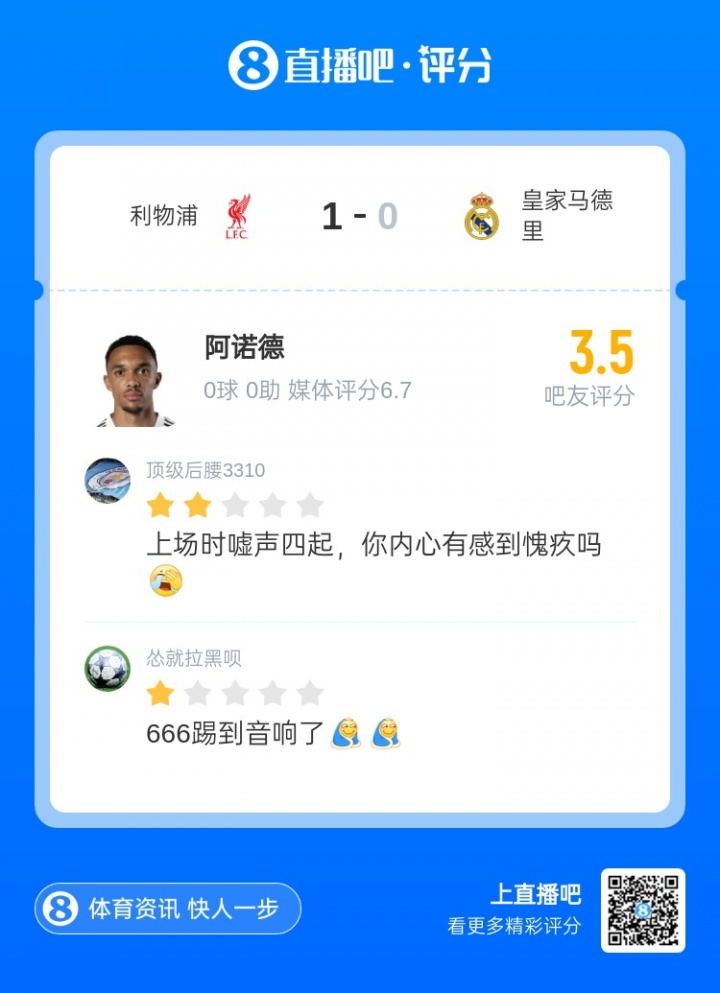 本场比赛,降生于利物浦青训,今夏加盟皇马的阿诺德于第81分钟替补登场,但并未蜕变比赛走势,范戴克领导的利物浦最终也曾在主场获得高出胜。