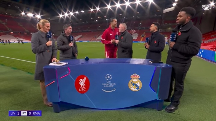 赛后,利物浦队长范戴克在场边继承了媒体TNT的瞬采,与鲁尼、沃尔科稀零褒贬员聊了顷刻间。