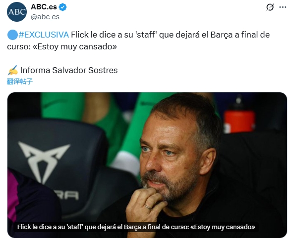 据西媒ABC独家音讯,弗里克接洽赛季后离开巴萨。