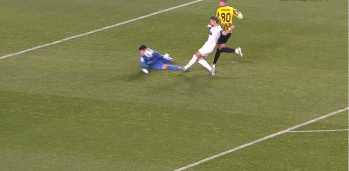 第33分钟,阿纳尔别科夫出击用头挡出敌手单刀↓