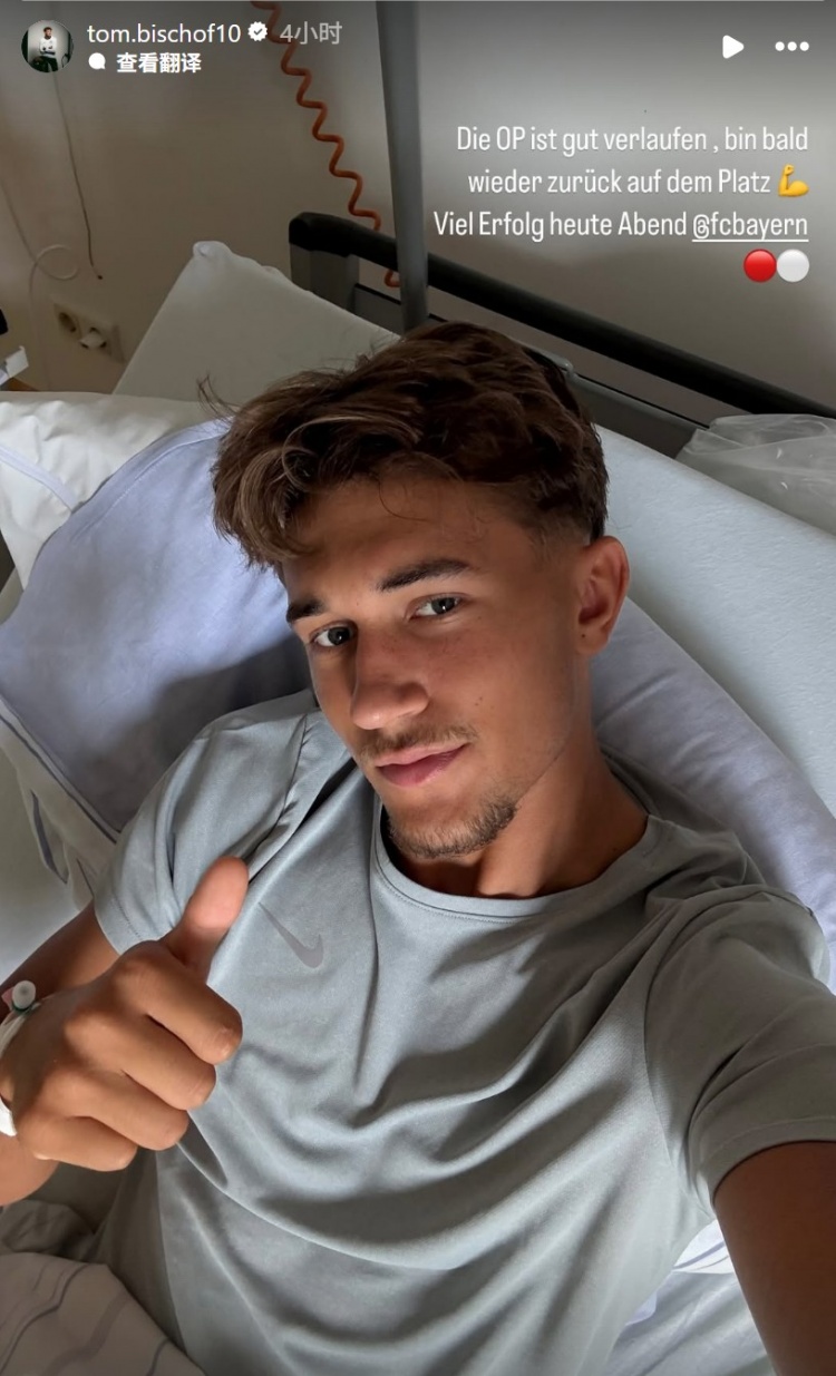比朔夫在社媒配文写说念:“手术十分胜仗,我会很快追忆。祝球队今天的比赛好运!”