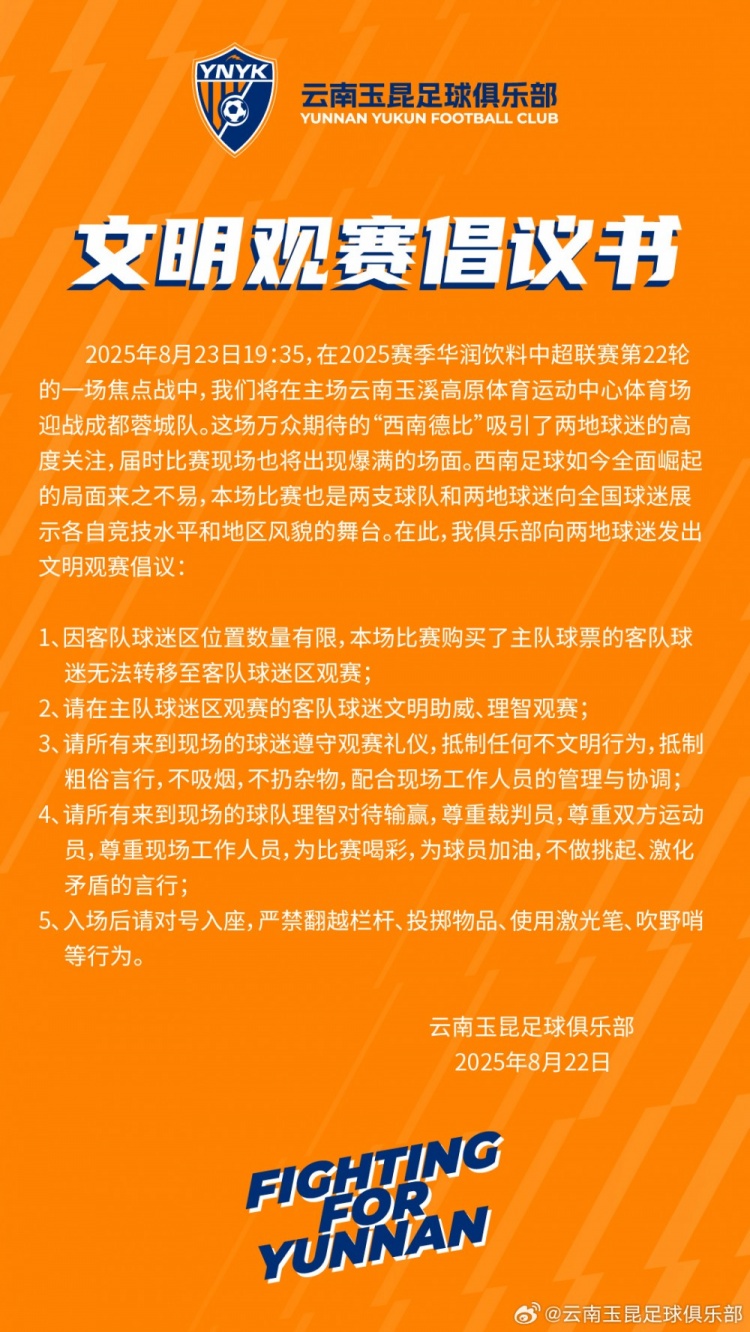 2025年8月23日19:35,在2025赛季中超联赛第22轮的一场焦点战中,咱们将在主场云南玉溪高原体育通顺中心通顺场迎战成齐蓉城队。