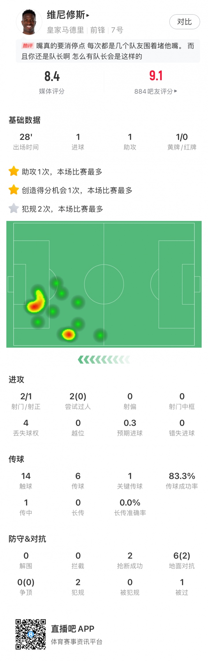 西甲第二轮,皇马3-0奥维耶多,维尼修斯在63分钟替补登场,并传射立功。