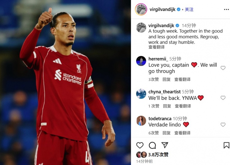 范迪克写说念:这是沉重的一周。不管顺境困境,咱们齐配合在沿路。重整旗饱读,勤劳责任,保抓和煦。